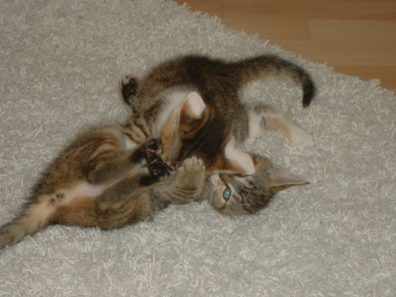 Die kleine 3farbige ist etwas zu früh abgegeben worden und mußte erst noch aufgepäppelt werden - aber wie man sehen kann sie hat gut zugelegt.